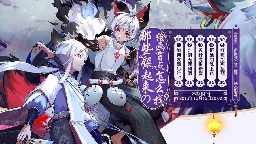 〖壹〗、直播地址:探索绘画盲点,找寻突破之路。特邀嘉宾:缺水的海怪:《阴阳师》合作画师,广州美术学院校友。作品风格鲜明,画面节奏感强,色彩生动活泼。拥有丰富的原画、美宣、插画、前期设定经验。