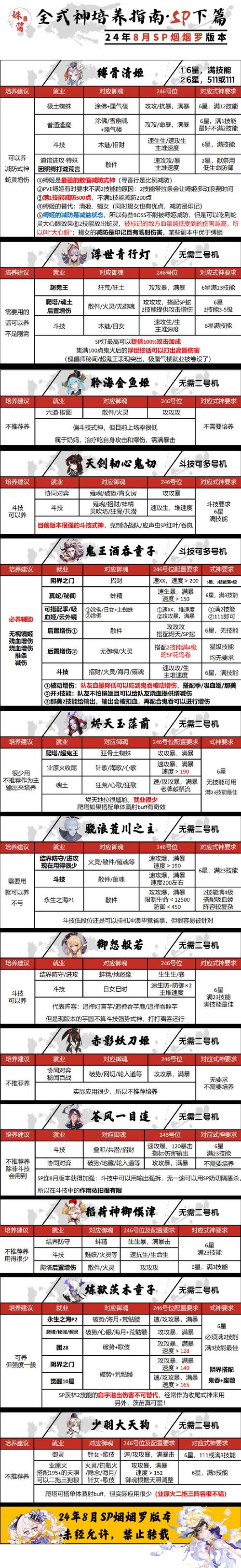 〖肆〗、阴阳师2024必培养sr式神有哪些 T0 饭笥、阿修罗、食灵、须佐、因幡辉夜姬、SP大蛇、不见岳、帝释天和季。T1 千机、SP面灵气、墨鱼、铃彦姬、SP绘卷、紧。T2 妖刀姬、玉藻、茨林、茨木、SP玉藻前、两面佛。T3 灯姐、SP追月、迷豆子、缚姬、鬼吞、八岐大蛇、铃路御前。