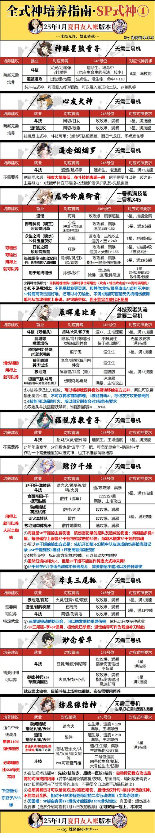 〖壹〗、总之,对于新手玩家来说,选取合适的式神进行培养至关重要。鸟是最理想的选取,其次是小黑,它们在获取难度和战斗力方面都表现出色。鬼女红叶、白狼和蜘蛛等式神虽然在前期可以培养,但它们的战斗力在后期相对较低,因此培养时应适度。