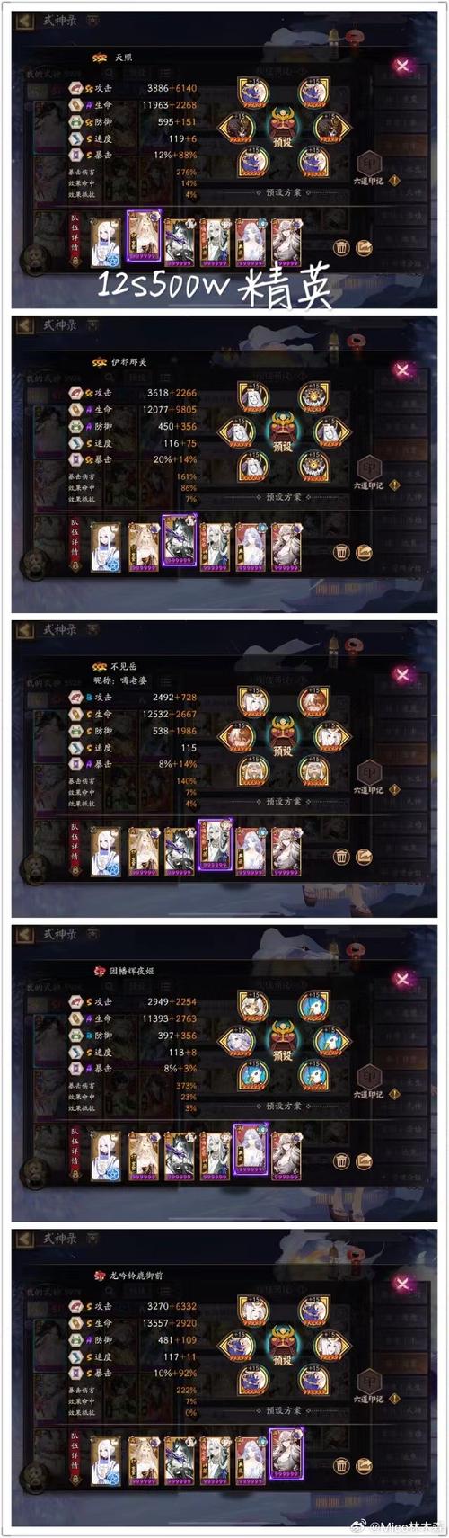 长线:雪幽魂土蜘蛛清姬+元兴寺伊速命爆邪那美+高爆伤SP缘结神/花鸟卷+SP辉夜+孔雀明王。短线:因岳常规体系搭配天照+阿修罗/SP神蛇+任意增伤辅助即可。