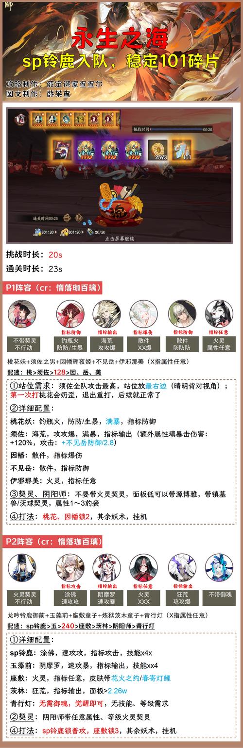〖肆〗、对于想要在《阴阳师》中成功低配通关神罚御魂的玩家们,这里有一份详细的阵容和策略建议。首先,让我们来看看推荐的阵容配置:核心角色:结神 - 提供树妖御魂,优先选取速/生生暴/爆效果,以增强治疗效果指标。须佐之男 - 使用海荒御魂,强化攻击力和暴击。