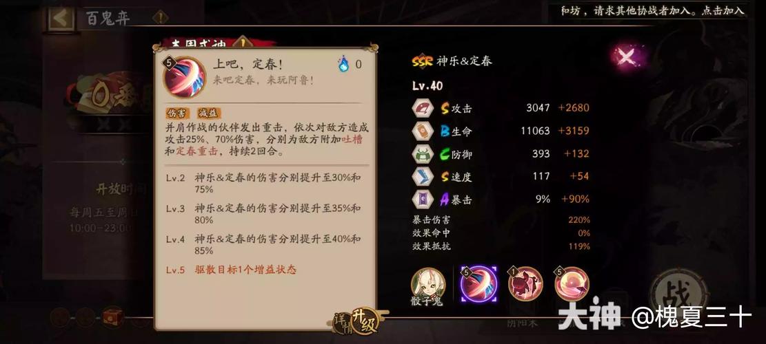 〖肆〗、第一个要介绍的也是我们第一个联动式神,奴良陆生。陆生身为第一个联动式神,玩家们能感受到策划的用心,攻击为S,且高抵抗,在当年反击流当道的时候也是被列为国家队的一员,不管是斗技和秘闻或是逢魔都有他的一席之地。