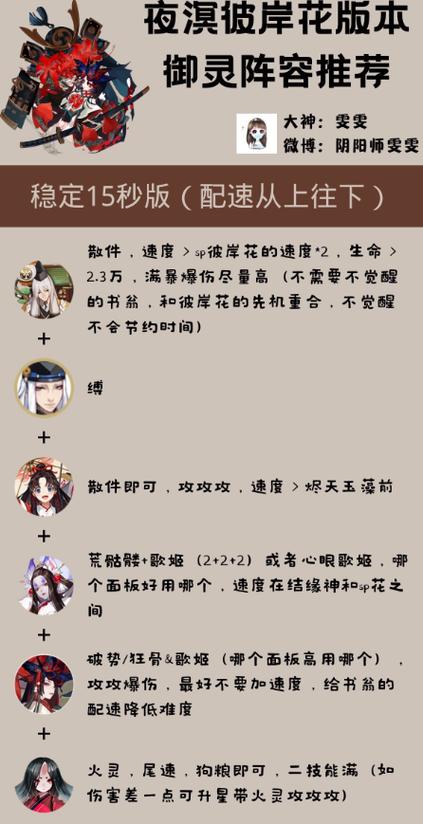 〖贰〗、第九名:雪女 控制式神,技能越强控制越强。推荐雪幽魂、效果命中御魂,二四号位带速度加成,六号位带效果命中。第十名:鬼使黑 AOE技能加被动,收割能力强。推荐破势或心眼御魂,二四号位带攻击加成,六号位带暴击或暴击伤害。