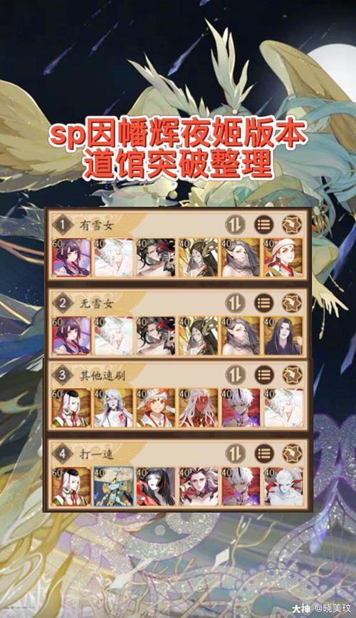 首先,一个高配的阵容推荐包括须佐之男、季、因幡辉夜姬、不见岳和晴明。这个阵容中,须佐之男和季作为主要输出,因幡辉夜姬提供火力支援和增益效果,不见岳则负责增强队伍的防御能力。晴明作为阴阳师,可以提供额外的技能支持和控制效果。