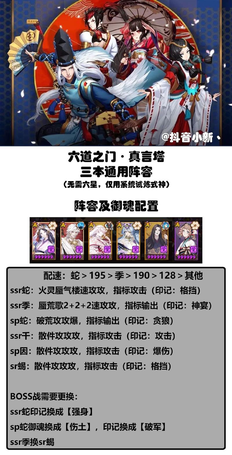 〖贰〗、推荐的阴阳师阵容配置如下。配速设置为丑女千姬缘结神紧那罗帝释天晴明阿修罗。开局时,晴明应手动切换,丑女进行普攻吸引魅惑,千姬则插入贝灵并锁定2技能,紧那罗帝释天锁定3技能。在第一阶段,晴明则负责普攻并标记目标以消灭敌人,同时晴明也需要补充消灭技能以帮助输出。