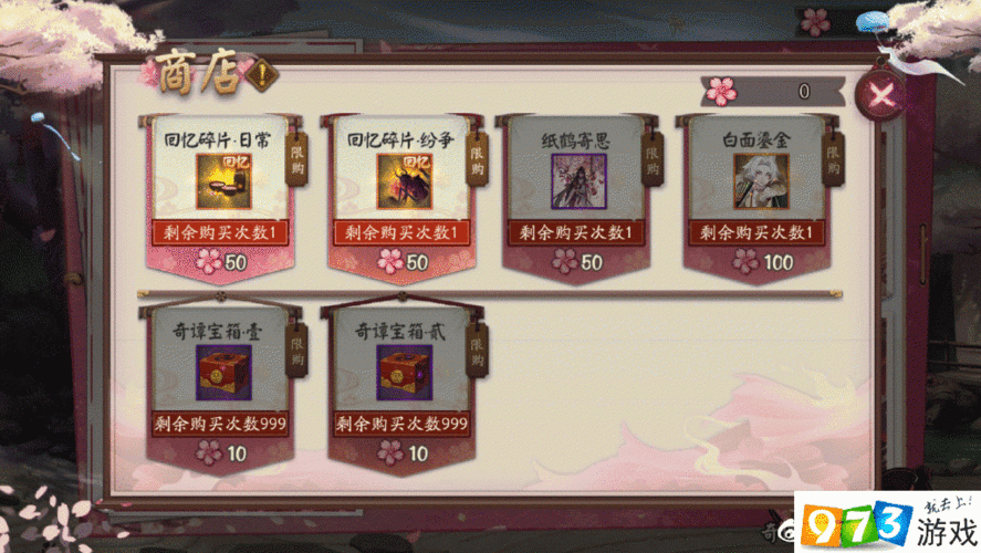 使用樱花币在奇谭商店兑换回忆碎片。回忆碎片分为角色、场景、事件三类,每类有两种。将相关回忆碎片进行组合,生成并解锁新的故事,每解锁一则新故事都会获得50勾玉奖励。商店奖励:商店开放时间:3月18日维护后至4月5日23:59。商店内可兑换奖励包括回忆碎片、宝箱、妖狐·白面鎏金皮肤等。