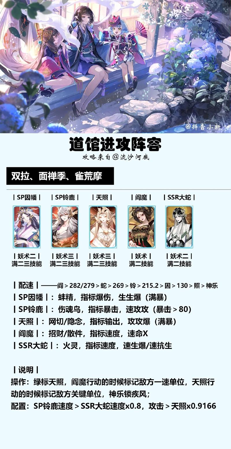 对于肉队,建议使用暴击阵容进行快速拆解,例如双拉双蛇。sp御馔津的二速拉条和控制能力对道馆挑战很有帮助。当然,御魂的选取同样重要,毕竟游戏名字是御魂师。总结来说,阴阳师道馆模式的阵容策略需要灵活应对,既要根据防守方的阵容调整,也要注意御魂的搭配。