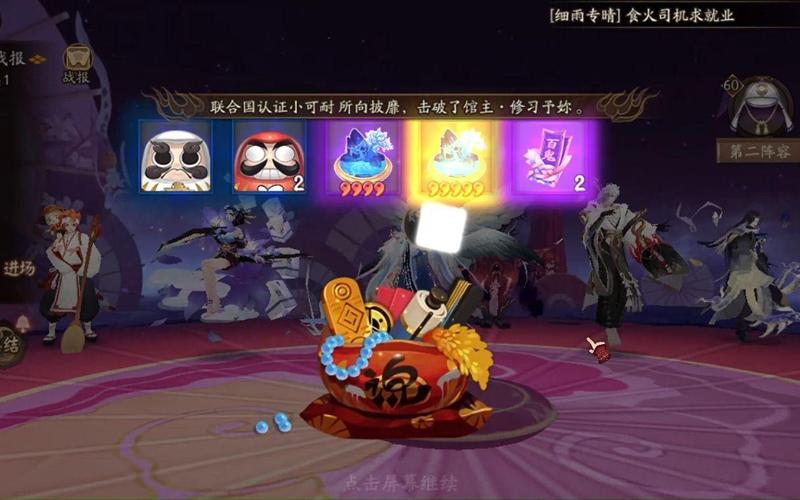 到时间了选取要踢的馆,然后集结、进攻,只要有一人打倒对方馆主,就进入挑战神兽阶段,时限内对神兽造成伤害越高掠夺资金越多,此阶段推荐式神书翁。抢到的寮资金每周会给有贡献的成员发工资,但是要等下周结算才知道可以领多少。