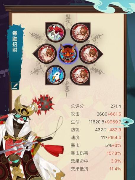 镰鼬一太郎的被动技能很强大:他的“再动”技能具有3个回合的倒计时,攻击力相当可观。这个技能让镰鼬一太郎在对战中能够持续输出,给对手造成不小的压力。 镰鼬一太郎的式神组合很棘手:山兔、大天狗、鸩和妖琴师这四个式神各有特色,配合镰鼬一太郎的被动技能,更是难缠。