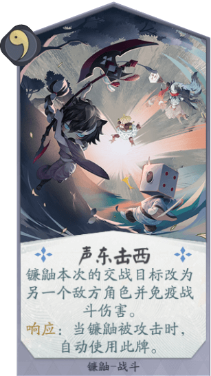 镰鼬在对对面牌手造成伤害的时候可以恢复自己一点能量点,然后再配合上他的几张一勾、两勾卡可以瞬间使用爆能的方法来获取到非常高的攻击力,以取到快攻削弱血量的效果,两勾卡同生共死更是可以很好的和对面的式神进行换血,起到非常不错的限制敌方输出,控制场面的效果。