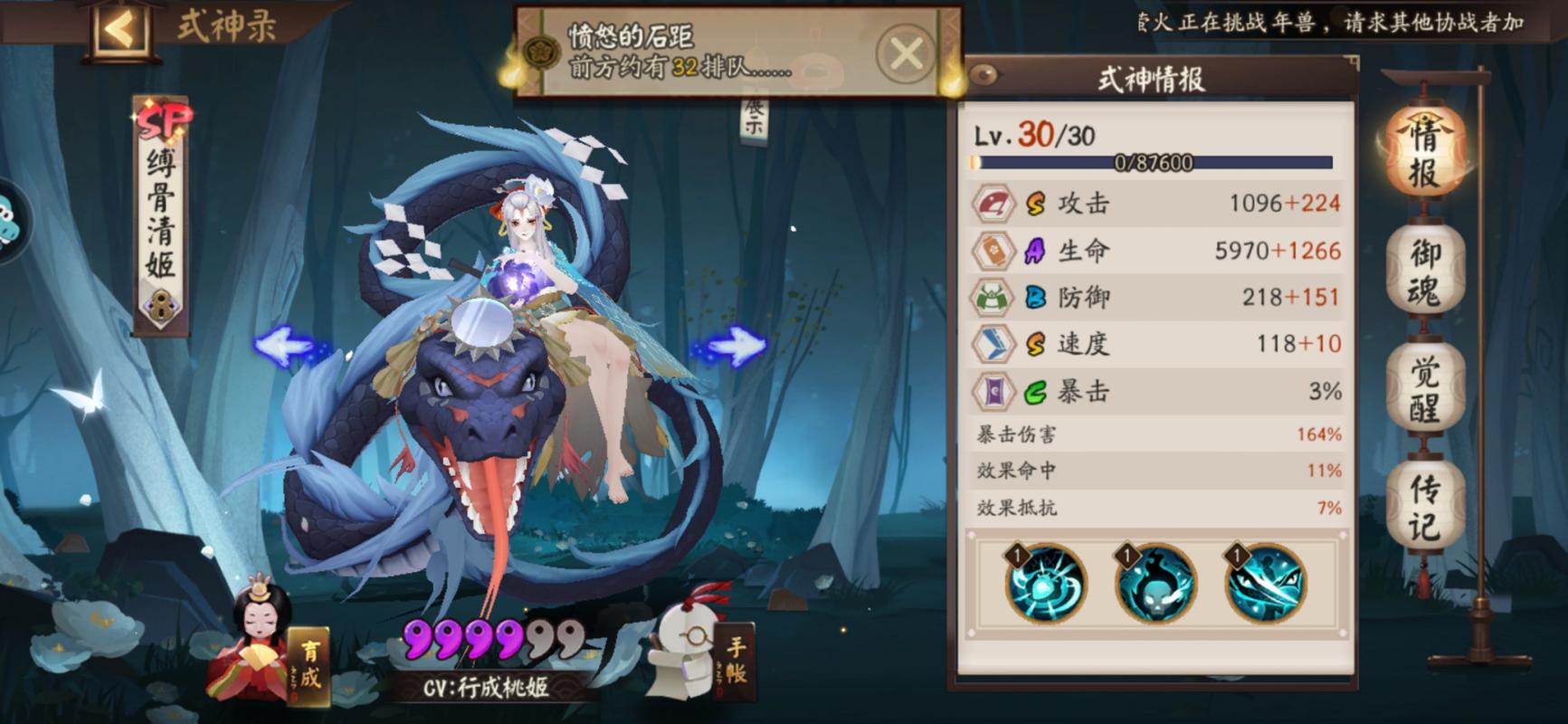 SP缚骨清姬介绍 这个SP缚骨清姬将会在6月17日正式的登录到这个百鬼奕,到时候玩家们就可以去这个体验服中体验一下这个SP缚骨清姬了。就现在来看的话这个SP缚骨清姬的强度应该是非常的不错的,因为这可是一个SR直接出的SP式神,上一个就是控场的爹SP般若,强度都是非常的不错的。
