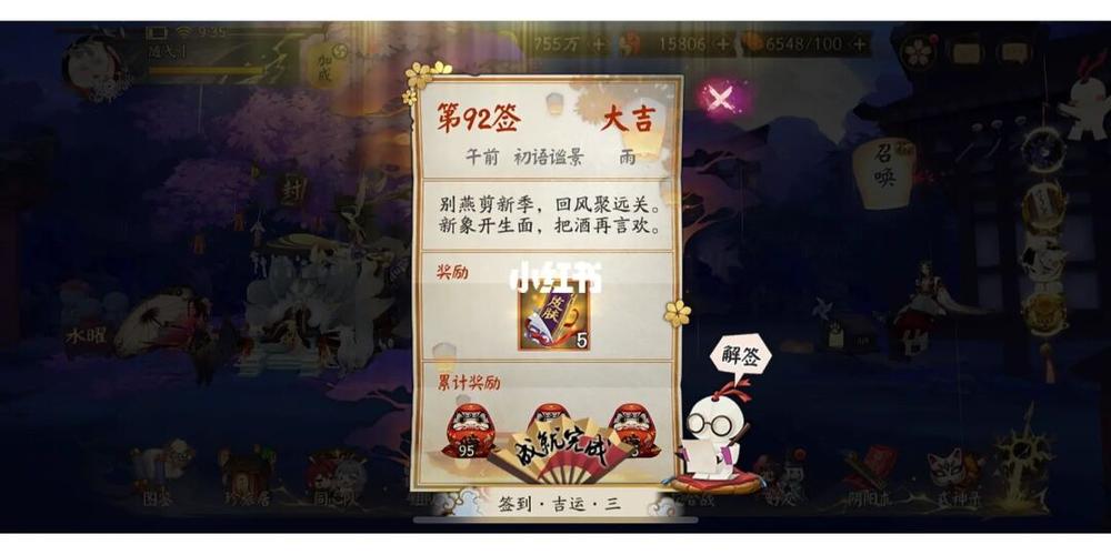 〖伍〗、蓝符画圈抽:某几位全图鉴大佬的玄学,抽卡画圆圈抽ssr的几率更高。更新抽:等阴阳师更新后抽卡,一般几率会高上很多。算命抽:每天阴阳师会有日签,当日签如果是大吉的话一定要抽,或者平时一直都是小吉、未吉之类,突然有天出了中吉也可以抽。