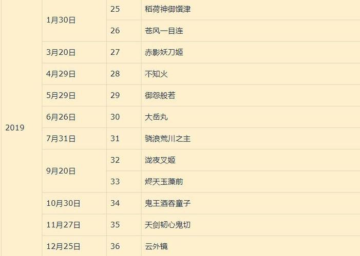 〖贰〗、阴阳师2020年的式神推出计划如下:1月20日,鬼童丸作为新式神加入游戏。1月25日,聆海金鱼姬登场。3月11日,缘结神与玩家们见面。4月15日,浮世青行灯正式推出。4月29日,风狸成为新式神。5月20日,铃鹿御前成为新成员。6月10日,蝎女加入游戏。6月24日,缚骨清姬登场。