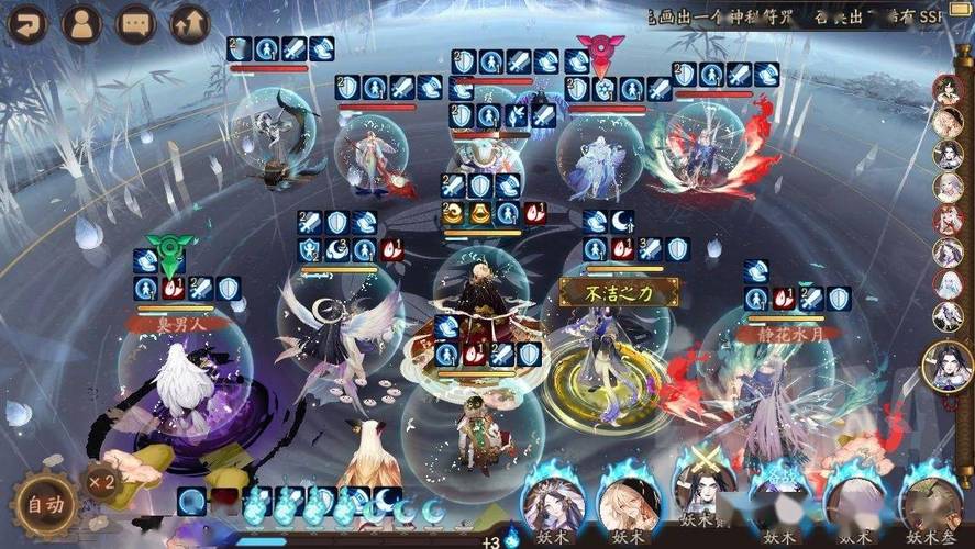高分阵容搭配推荐,以千姬、清明、麓丸、SP面、帝释天、缚姬为主力式神。第一种搭配方案:以千姬插贝戟后进行普攻,其余式神使用妖术标记敌方,晴明负责先灭后星。在精英阶段,将莲花技能传递给正确的呱太,呱太阶段结束后,再将莲花技能转给boss。