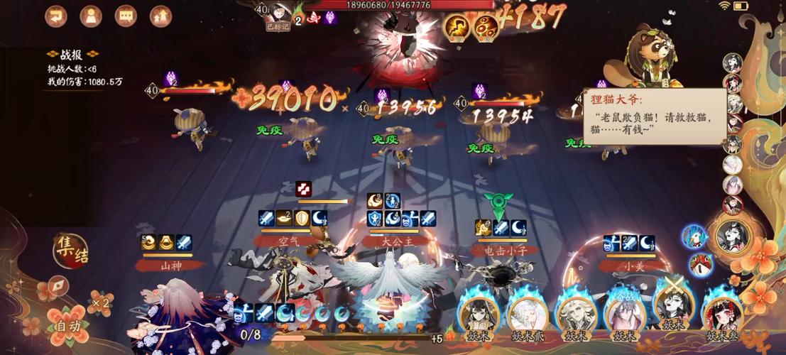 选取单挑或联合好友共同挑战。 击败鬼王后,伤害比较高者、最后一击者和发现者将获得额外奖励。积分和战功将按比例共享给好友。 每次发现鬼王后,只有在消灭或让它逃跑(未击杀)后,才能寻找新的挑战。疲劳度与追击每次退治增加10点疲劳度,强力追击会额外消耗3倍疲劳并提高伤害。