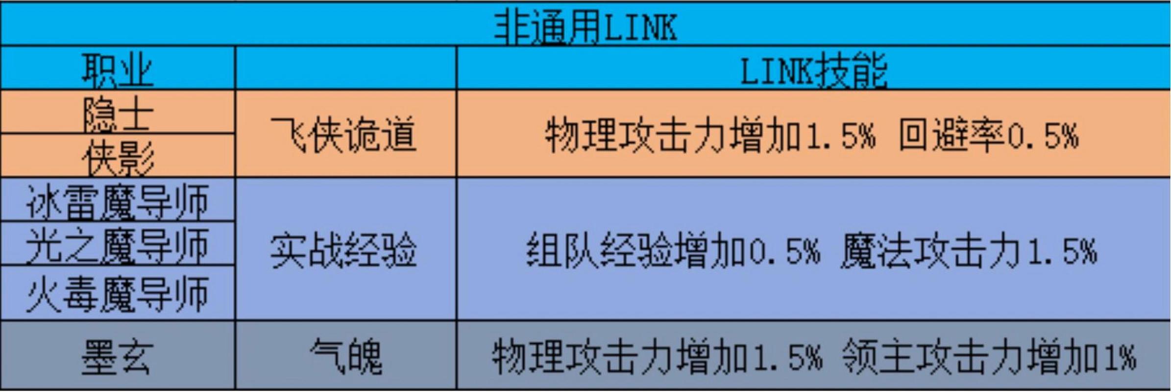 〖壹〗、火炮手:2级Link提供25全属性加成和10%HP/MP恢复。恶魔猎手:15%对BOSS的伤害提升。夜光法师:15%无视敌方防御。阳什读川松短敌决帝尖兵:10%全属性加成。恶魔复仇者:10%总伤害提升。林之灵:7%BOSS伤害和暴击率,4%HP/MP。幻影:15%暴击率,适合暴击未满的职业。