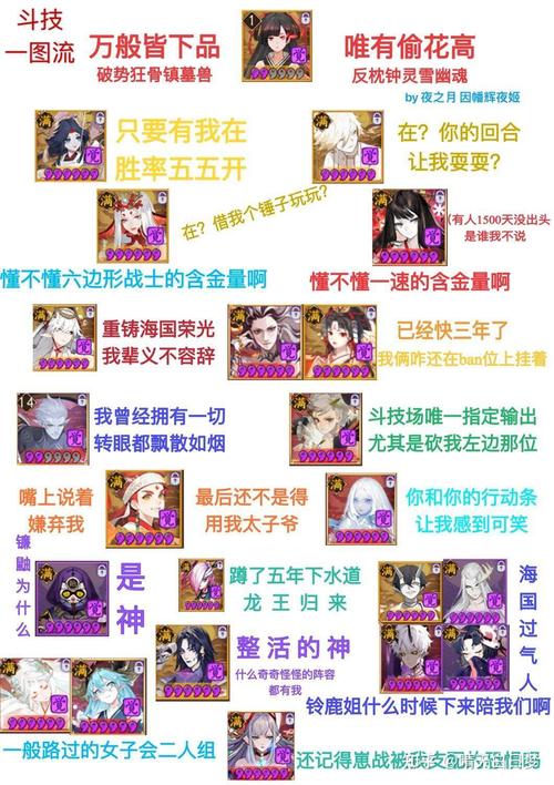 〖叁〗、秃驴师:形容那些因为过度投入游戏时间而导致头发稀疏的玩家。 林冲:指的是没有进行过大额充值,完全依靠零消费的玩家。 亲儿子:指在当前游戏版本中特别强大,受到游戏开发者喜欢的式神。 咸鱼:这类玩家对游戏有一定的理解,但自身并没有达到很高的水平。
