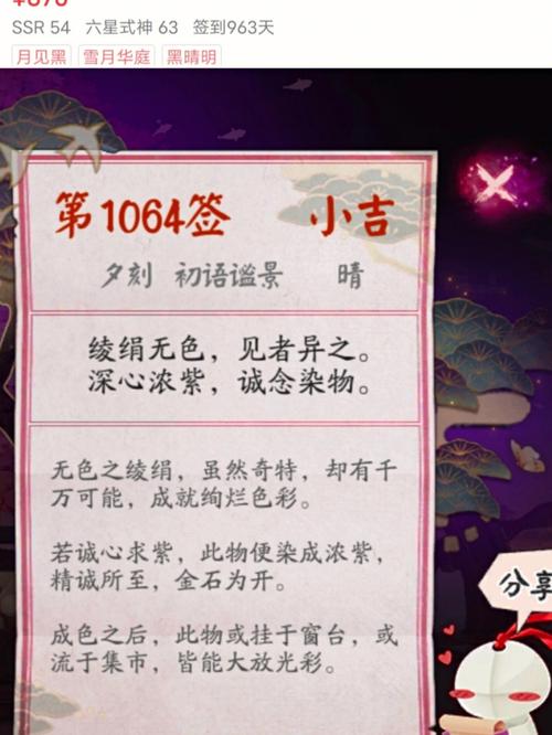 〖贰〗、阴阳师中的“咸鱼”主要有以下两个意思:特指式神荒川之主:在阴阳师手游里,“咸鱼”一开始是用来形容SSR式神荒川之主的。这个式神虽然稀有度高,但能力相对较弱,培养起来也很费劲,所以被玩家们戏称为“咸鱼王”,意思是这个SSR式神不太中用。自嘲说法:后来,“咸鱼”这个词也被很多玩家用来自嘲。