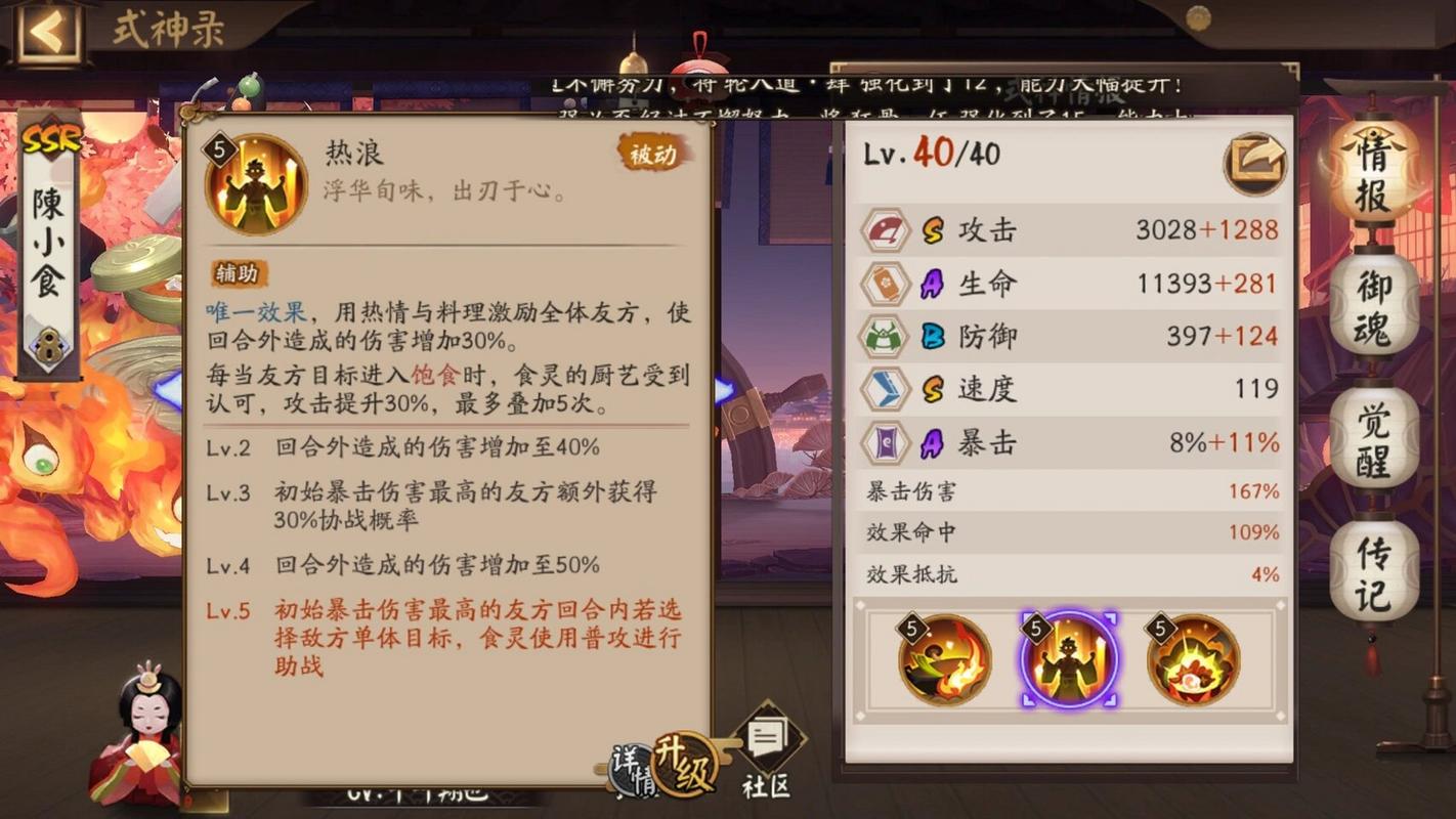 〖肆〗、在阴阳师中达到三百爆伤满暴击的策略主要依赖于御魂的配置。首先,为了实现爆伤与暴击的叠加,必须依靠六星御魂,特别是六号位主属性为暴击伤害的御魂。强化到十五级后,这种御魂的爆伤值可达89%,同时在强化过程中,比较好选取附加属性为爆伤或暴击的类型,以增强角色的输出能力。