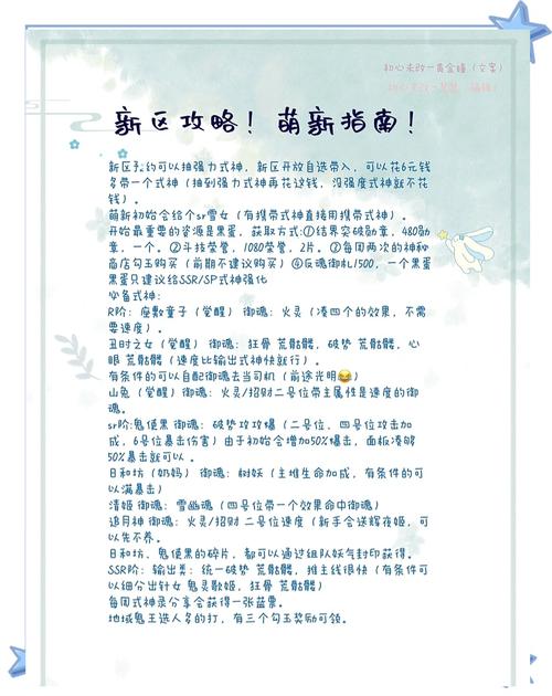 在阴阳师鬼王之宴的新手阶段,开局策略有所调整。首先,你需要在升到15级后开始抽卡,但初期的重点并不在于追求SSR,因为每个式神都有其独特价值。即使没有输出,你可以先培养辅助式神,加入队伍后仍能有大佬带你入门。