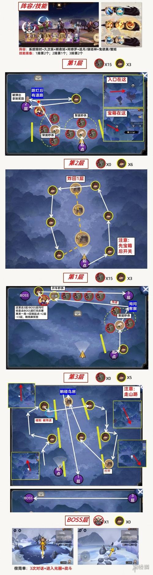 〖叁〗、第一层和第二层:在进入副本之前,准备下图中提供的阵容,并根据线路一次完成交互,从第二层传送点移动到第三层。第三层:进入第三层后,我们只需要完成相应的BOSS挑战。