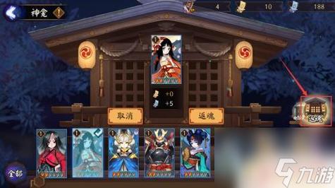 〖肆〗、式神分解:玩家进入神龛商店后,选取自己想要返魂的式神,将其拖动放入到返魂界面中即可对式神进行分解,式神返魂后会产出御札道具,产出的御札会累计到右上角的资源栏处,玩家可以用这些御札兑换神龛商店中的其他式神和相关道具。