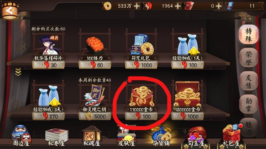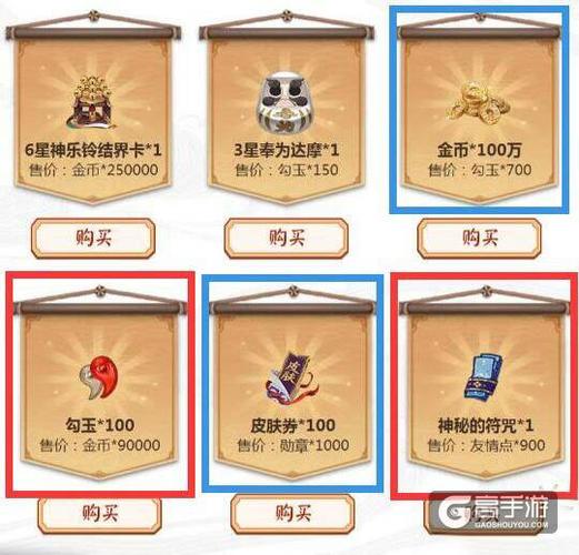 〖壹〗、玩家可通过勾玉、勋章、金币、荣誉、友情点购买心仪的商品道具需求表:性价比分析:①6星结界卡售价:〖25w金币(第一批)/200勾玉(第二批)/450勋章(第三批)〗:只有互换收益才高。