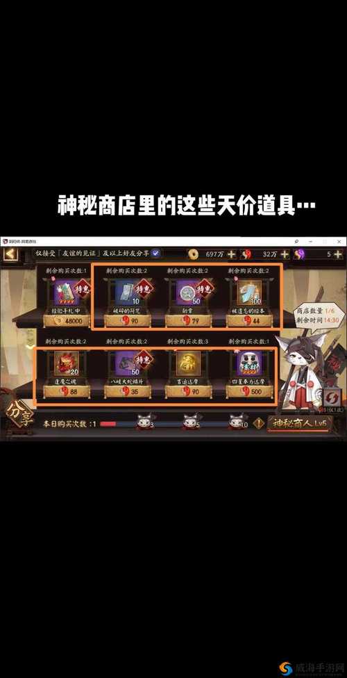〖伍〗、阴阳师神龛商店是一种新功能,玩家可以通过分解式神获得御札,用于兑换其他式神或道具。进入神龛商店的方式是:在召唤界面点击右上角的“式神返魂”按钮,然后选取想要返魂的式神放入返魂界面。根据式神的品质和星级,返魂后会产出相应数量的御札,这些御札会累积在右上角的资源栏中。