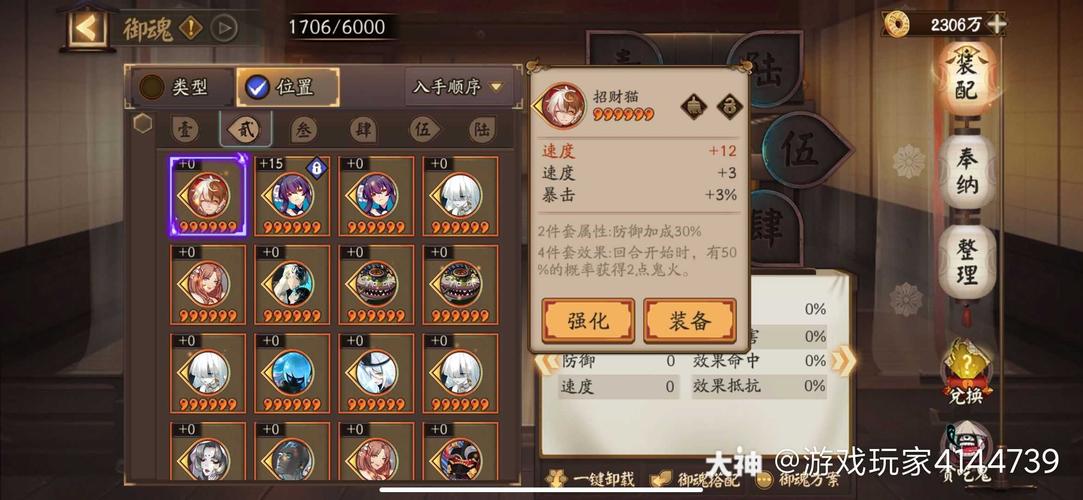〖叁〗、在《阴阳师》游戏中,招财猫作为一种特殊御魂,其出处与获取方式颇为有趣。此神秘之物主要在第16章副本中随机掉落,同时,每周二的御魂、业原火副本也是其出现的场所。此外,神秘商店亦是一个刷取招财猫的好去处。招财猫的具体效果与属性同样引人注目。它分为2件套与4件套两种。