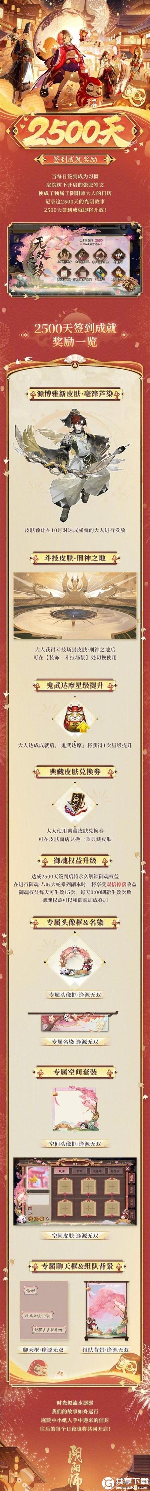 〖贰〗、限量头像框、式神皮肤商店5折优惠卡。未收录SSR式神,获得一个图鉴里没有的式神,当然如果全图鉴的话,送一个限量头像框累计签到500天奖励:未收录SSR*1,至尊永久特权(特权内容领取可见),限定头像框·相依偎。