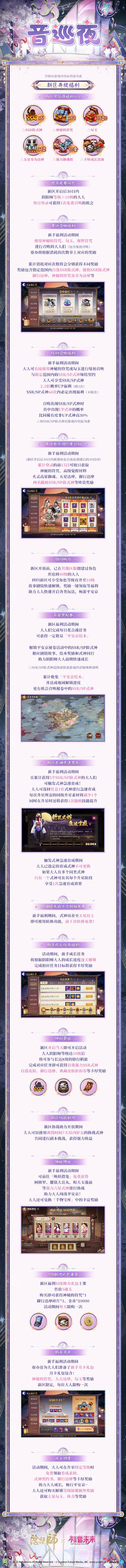 第一时间入驻新区,开启你的阴阳师之旅啦!预约前辈拿SSR:新区集结期间还可以提前预约一位前辈哦!新服开启后进入平安京,会以邮件的形式通知你预约的前辈。