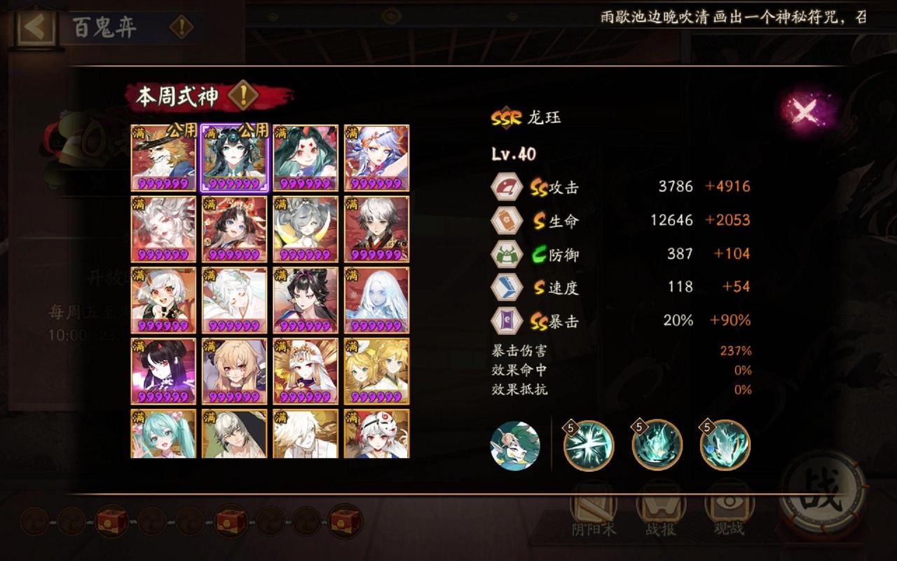 〖叁〗、拉条意义:在阴阳师手游中,拉条是指通过特定式神的技能减少进度条长度,让式神更快地出手。简单来说,就是让你的式神在战斗中能够更快地轮到他们行动。拉条式神:常见的拉条式神有镰鼬、妖琴师、山兔、食发鬼等。这些式神拥有能够减少进度条长度的技能,是战斗中非常重要的辅助角色。