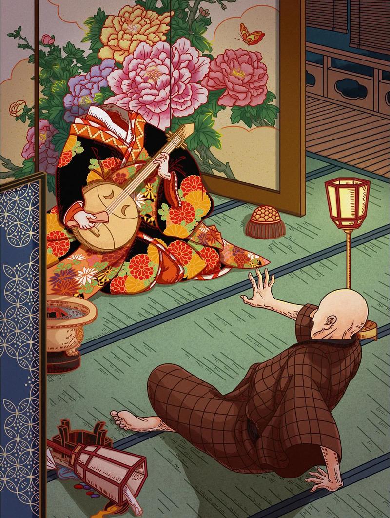 杀生石就是玉藻前的怨念和执念所化,而玉藻前是日本非常出名的大妖怪,类似于中国神话故事中的妲己。一开始她去了很多地方幻化成美女诱惑君王、败坏朝政、为祸百姓,不管它走到哪里都会引起一阵风浪,使得生灵涂炭。后来她来到了鸟羽天皇身边,深得天皇宠幸,玉藻前这个名字就是天皇所赐。