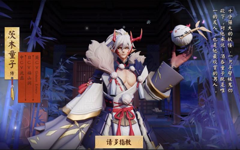 皮肤设计上,茨木童子身着皓月下的青竹白袍,漫步于雪覆的山尖,展现出一种霸气而不失洒脱的风采。立绘中的他举手投足间,透露着胜利者的自信和愉悦,引人注目。特别是皮肤的细节部分,那饱满的胸肌和点缀的毛球,不仅令人眼前一亮,更是让一些动漫迷联想到《犬夜叉》中的杀生丸,增添了额外的魅力。