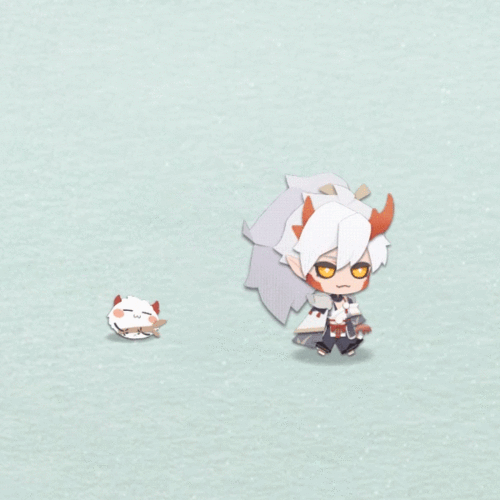白发高束,赤角冲天;金色瞳仁摄人心魄;大妖气质,令人凛然生畏;白袖环金,袍摆垂叠,竹纹点缀其间。爽直坦率的茨木童子,正如青竹般刚毅不屈。