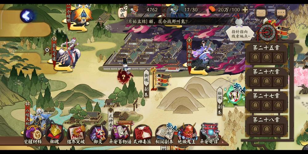 〖伍〗、一块儿来看下吧。阴阳师石中赤影第二天怎么玩 活动攻略:首先打开游戏,点击前往获取,得到线索;接着我们点击前往探索,消耗相应材料探索;根据寻宝罗盘知识,来到下图位置;最后在御魂旗子旁边,点击影子,即可得到符文;最后回到界面,随便点亮一个,即可解锁获取奖励。