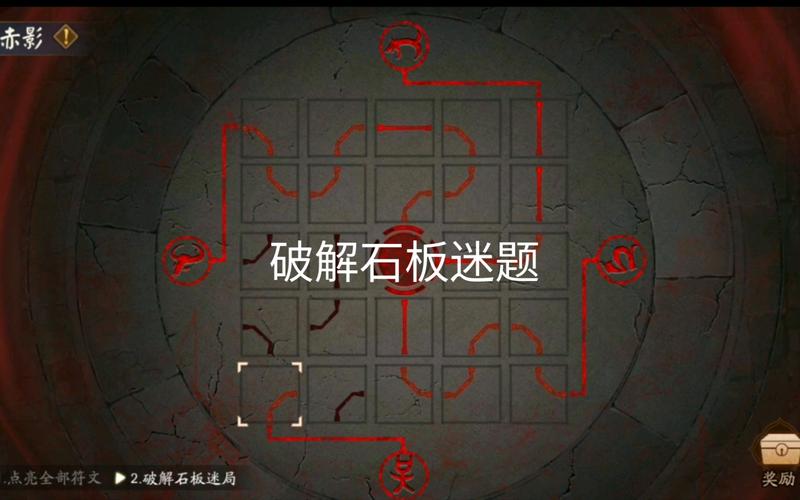 进入《阴阳师》手游,选取石中赤影,开启石板迷局的破解之旅。石坛上分布着四枚能量符文,它们蕴含的力量需引导至中央的石槽。这是一项精密的工作,需要细致的观察与精准的操作。点击符文可使石板旋转90度,顺时针方向。你的任务是通过连接符文的线路,使其在中心汇聚。