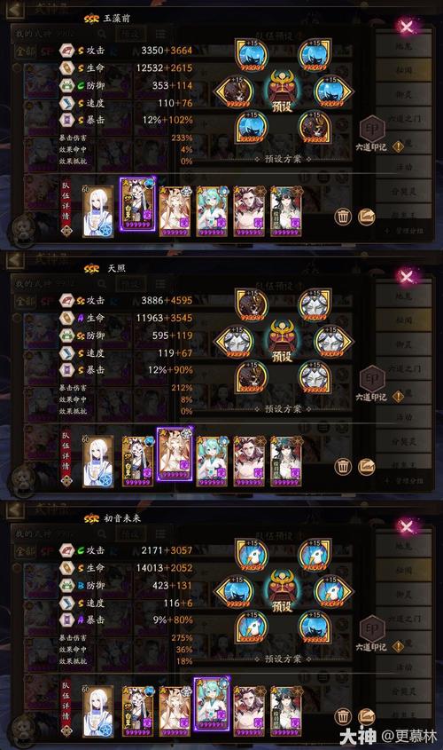 〖贰〗、山兔/镰鼬:加快出手速度和提高输出能力,对于所有输出式神来说都是非常有益的。椒图:提供生存能力,使得傀儡师在面对暴击时不会受到致命伤害。同时,椒图还能增加暴击伤害,这对于傀儡师这种对暴击要求高的式神来说是非常有利的。