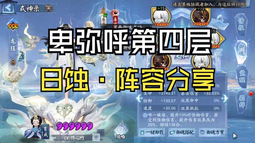 打法攻略 阵容选取:在非特攻日,推荐使用“千帝缘须弥”阵容,具体包括千姬、帝释天、缘结神、须佐之男和弥豆子。千姬:使用涂佛御魂,属性选取攻击、攻击、攻击。帝释天:使用火灵御魂,属性同样选取攻击、攻击、攻击。缘结神:使用招财御魂,属性选取速度、生命、暴击,并确保满暴击。