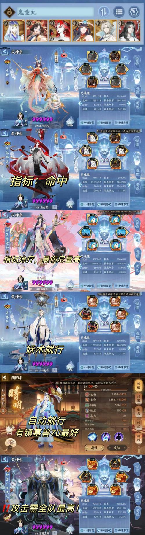帝释天:火灵攻攻攻。 清姬:雪幽魂土蜘蛛攻命攻,反堆速度145+。 两面佛/多段AOE输出:针女歌姬攻攻爆。 具体操作:千姬放完锤子后锁普攻,帝释天根据己方式神血量偶尔放3技能防止被减员,其余时间锁普攻。单体阵容推荐: 配速:无要求。 御魂搭配: 千姬:涂佛攻攻攻。