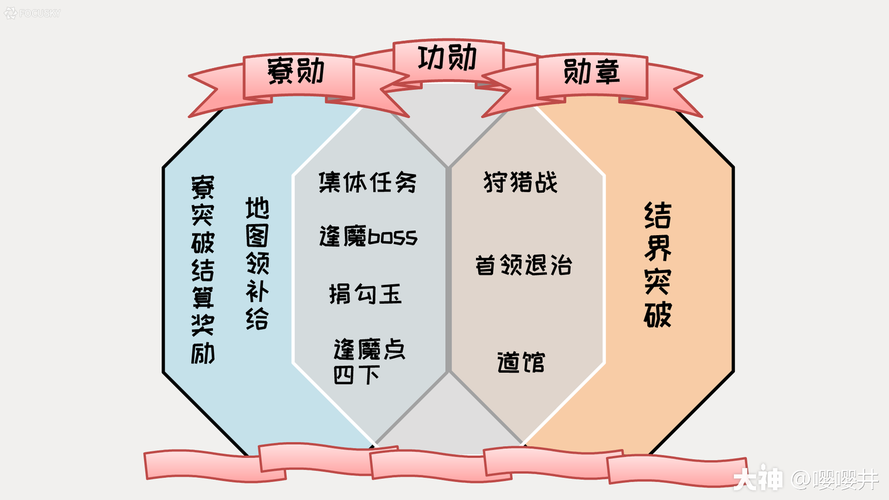 〖壹〗、阴阳寮:捐sr10个勋章,r4个,又可以刷任务又可以刷勋章。妖怪治退:每天中午晚上的妖怪退治,有一定的概率获得。王和阴界之门:通关越多或者伤害奖励越多。日常任务奖励:每天的日常任务或者是成就任务也有一定的勋章,但是不多。