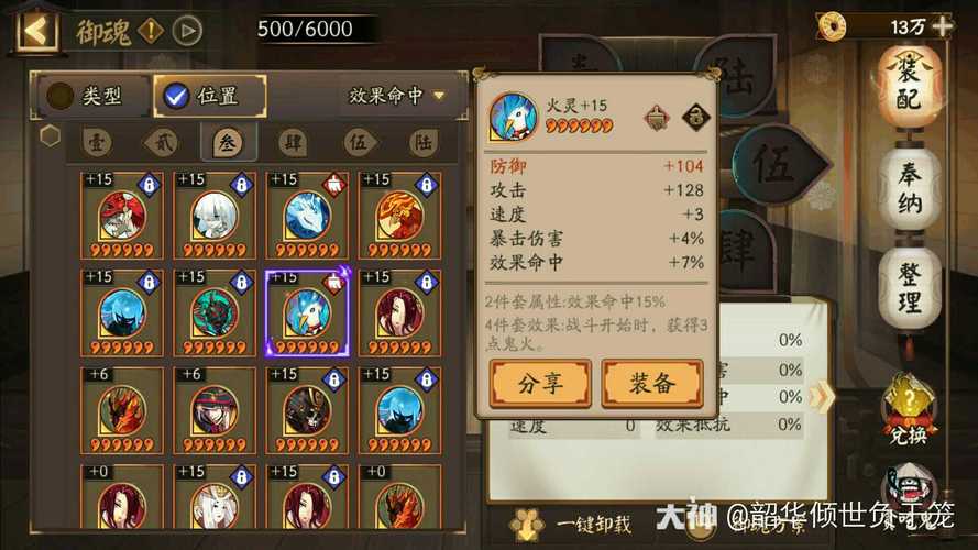〖陆〗、在《阴阳师》游戏中,查看御魂评分的步骤如下:首先,打开游戏内的式神录面板,找到你想查看御魂评分的式神,例如绘世花鸟卷。接着,点击进入该式神的御魂页面。然后,在御魂页面中,点击“御魂搭配”选项,选取你认为合适的御魂类型。对于绘世花鸟卷而言,PVE御魂中狂骨较为合适。