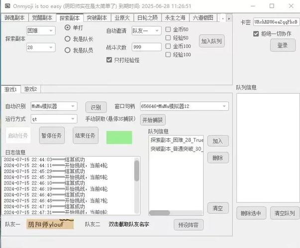 〖贰〗、首先,我们来介绍一下“阴阳师助手”。这款工具可以帮助玩家自动刷御魂、觉醒材料、御灵等副本,还可以自动抽取御魂、式神等,大大提高了玩家的游戏效率。此外,阴阳师助手还可以自动组队,帮助玩家快速匹配队友,省去了等待的时间。不过,需要注意的是,使用阴阳师助手可能会被封号,所以玩家需要谨慎使用。