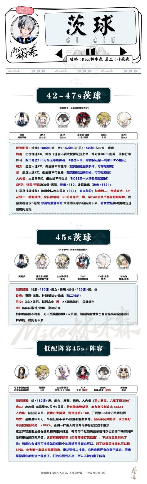 〖壹〗、【阵容搭配】式神选取: 萤草:提供治疗和辅助。 因幡兔:增强攻击力。 不见岳:控制和辅助。 绘卷则庆:辅助和增益。 SP花:输出核心。【御魂搭配】 萤草:树妖/散件,追求攻击和暴击伤害,确保满暴击率。 因幡兔:散件,注重暴击伤害,达到高爆发输出。
