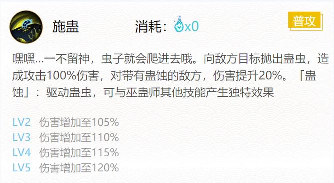 阴阳师虫子蛊的位置及快速打法如下:位置: 探索副本第六章:在第六章“似梦非梦”中,巫蛊师出现在首领关卡以及挑战模式中。在首领关卡中可以获得1个巫蛊师,而在挑战模式中,一次挑战就能获得14个巫蛊师。 御魂副本第六层:在御魂副本第六层的第二轮中,也会出现1个巫蛊师。