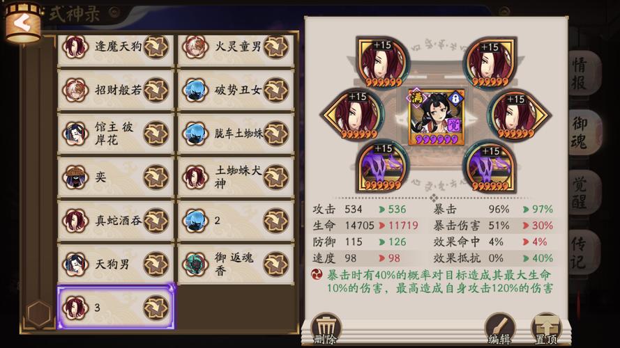 〖肆〗、其次,第二套御魂配置则更适合追求高输出。推荐使用中速 速攻爆伤伤魂鸟/恶楼/或是团队御魂。这套配置在对抗浪川阵容时表现出色,后期完全不惧。如果选取恶楼,其80%减伤能力使浪川难以突破,即便拥有两条命也不怕腹肌放蛇。第三套御魂配置则适用于逢魔场景。