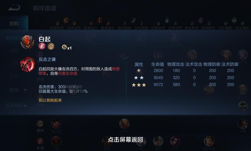 〖叁〗、玩法 利用位移技能接近敌人:改版后的白起拥有了一技能“血之回响”,这是一个位移技能,可以让他向指定方向跳跃并造成范围伤害。这使得白起能够更轻松地接近敌人,进行嘲讽和控制。合理使用二技能拉回敌人:白起的二技能“死神之镰”可以拉回经过的敌人,并造成额外伤害。