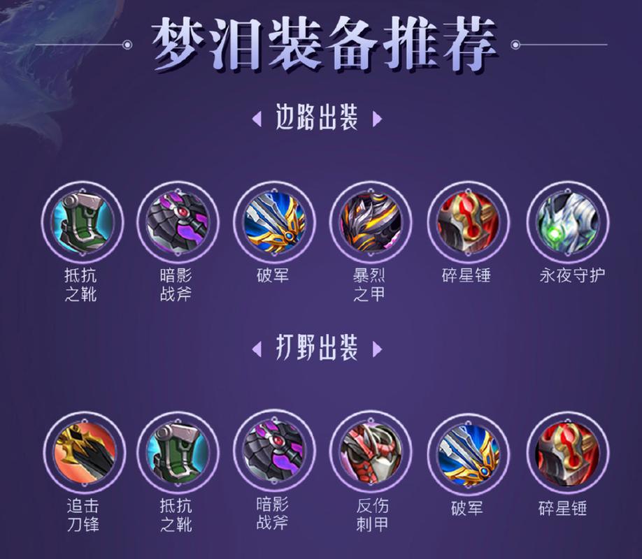 出装顺序:贪婪之咬+抵抗之鞋+暗影战斧+冰痕之握+破军+碎星锤 出装思路:这套可以增加一些血量,提高容错能力。