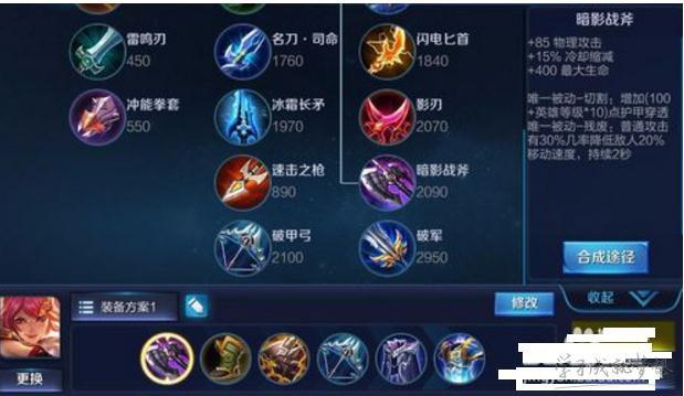 〖壹〗、核心装备:暗影战斧、破军、名刀·司命,提升物理攻击、穿透和暴击伤害,增强输出能力。防御装备:不祥征兆、魔女斗篷,提供物理和法术防御,增加生存能力。辅助装备:冰痕之握,提供冷却缩减和额外伤害,增强控制能力。其他装备:贤者的庇护或名刀·司命(根据实际情况替换),提供复活或免疫致命伤害的效果。