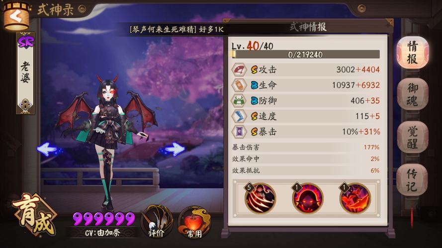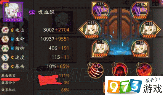 核心御魂搭配 “破势”四件套+“致命”两件套:这是近来最常见的搭配,可以极大地提升吸血姬的暴击伤害,使其在战斗中迅速秒杀敌方单位。破势的效果是,对生命值高于70%的敌人造成额外伤害,非常适合吸血姬的高爆发特性。“心眼”四件套+“攻击加成”两件套:这套搭配更适合面对高额防御的敌人。